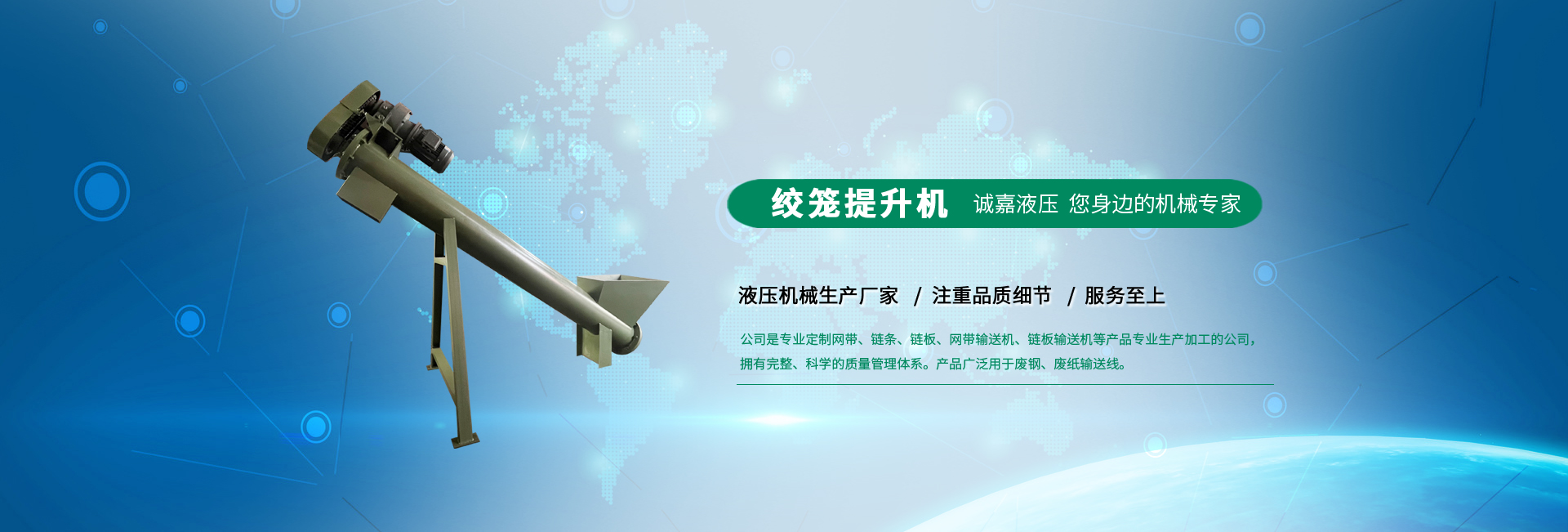 江陰誠嘉液壓機械有限公司是一家專業(yè)定制廢紙打包機、鐵鏈板式輸送機、皮帶式輸送機的生產(chǎn)廠家。公司坐落于聞名的江陰市周莊鎮(zhèn),東臨上海,南連無錫,北依江陰長江大橋,“黃金通道”——滬寧高速分路及錫澄高速公路穿近通過,地理位置十分優(yōu)越,水陸交通便捷。 公司建有專業(yè)的售后服務團隊,提供生產(chǎn)線設計,設備制造,安... ...【查看詳情】
